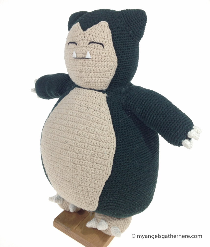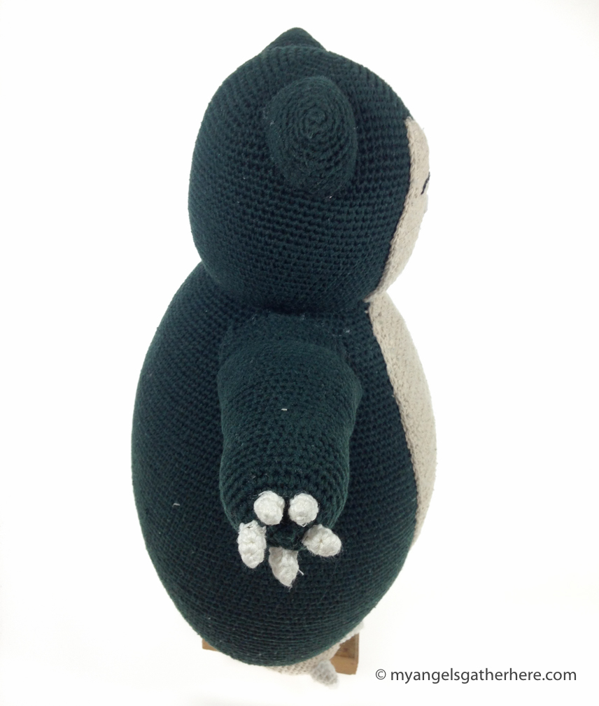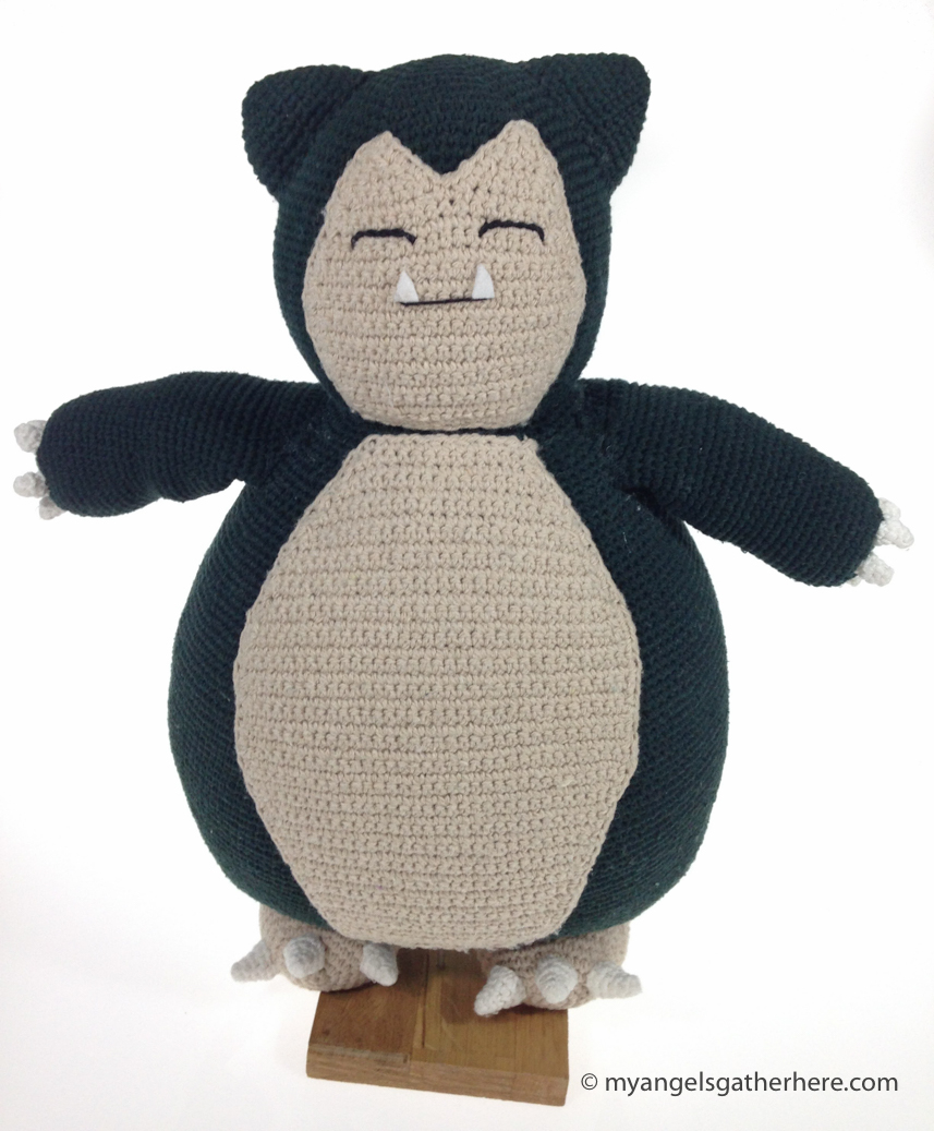 Cotton Snorlax Plush is one of the hugest Pokémon stuffed toys we knitted. It is made from organic cotton yarn so it is slightly smaller than the one we knitted with acrylic yarn. One small fact about Snorlax, you should pass it if you want to go to Route 7.