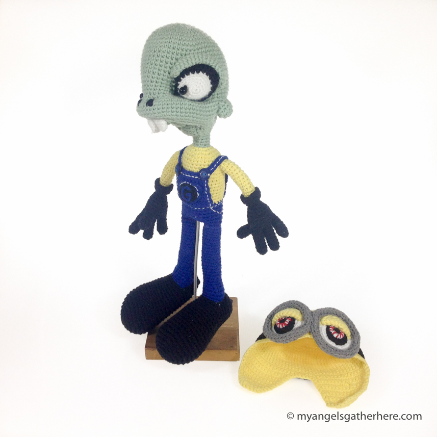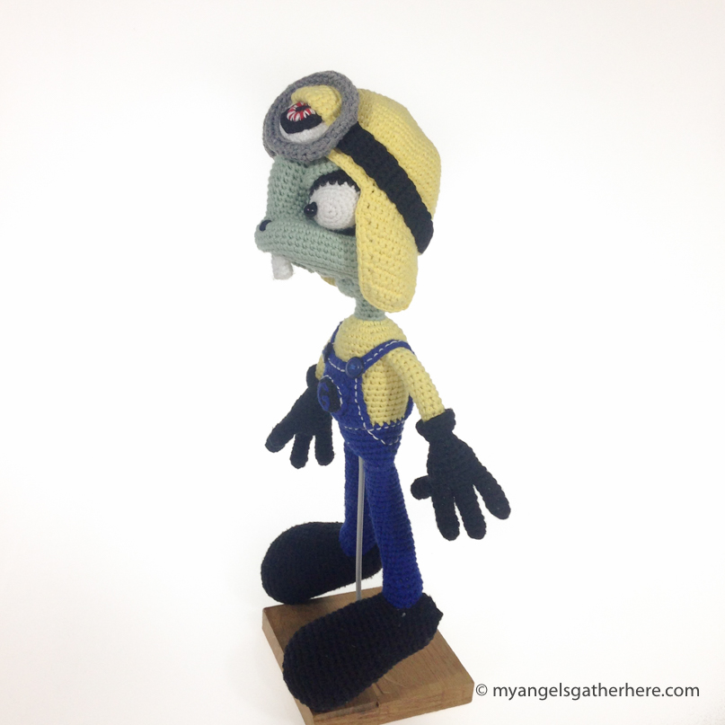 Hand crocheted Zombie Minion plush toy is one of the a great present for your friends who are a fan of Minions series and like Zombie characters. The zombie plush toy has a detachable helmet as you can see from product pictures.